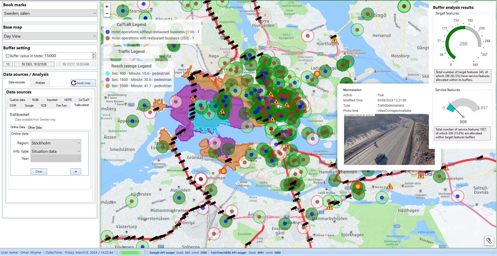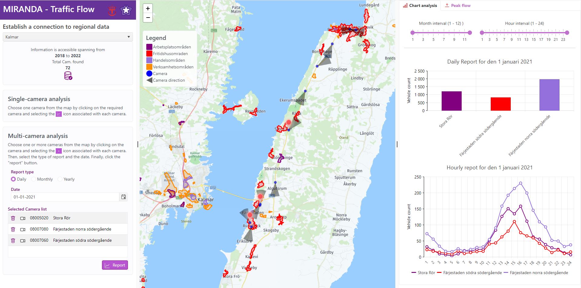 Tool for monitoring and analyzing traffic patterns across Sweden. By leveraging data from safety cameras, this tool provides detailed insights into traffic flow, allowing for analysis on both individual and multiple cameras simultaneously.