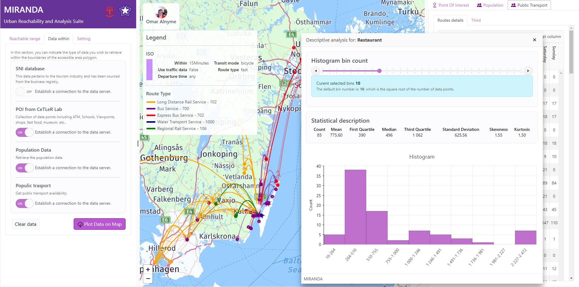 The results are presented both as a geospatial layer and in tabular format, facilitating seamless integration into statistical analysis software like R. Additionally, the tool offers basic statistical insights, empowering urban planners, transportation engineers, and policymakers to make informed decisions for enhancing public transport accessibility and promoting inclusive communities.